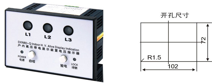 DXN8-Q帶電顯示器根據當前中壓系統開關柜技術發展而開發設計的一種新型的多功能、智能化模擬動態指示裝置。它集一次回路模擬圖、開關狀態、斷路器位置、接地閘刀位置、彈簧儲能狀態、高壓帶點指示、高壓帶點閉鎖以及手動加熱初濕控制、加熱器斷線指示等多功能于一體,這些指示功能可分可合,用戶可根據需要選擇。只要指定不同的訂貨型號并提供一次方案圖即可。將來還可以根據用戶需要加入回路電流值,電壓值,開關分合閘次數,溫度,濕度等數字顯示功能。通訊接口。給計算機監控網絡提供遙測,遙信數據。該產品以一體化布局配套裝備于開關柜,將簡化開關柜的面板結構設計、美化開關柜的面板布局,完善開關狀態的指示功能和安全性能。其中,優化設計的帶電指示部分,消化吸收了進口產品的先進技術、具有顯示清晰、長壽命等優點。