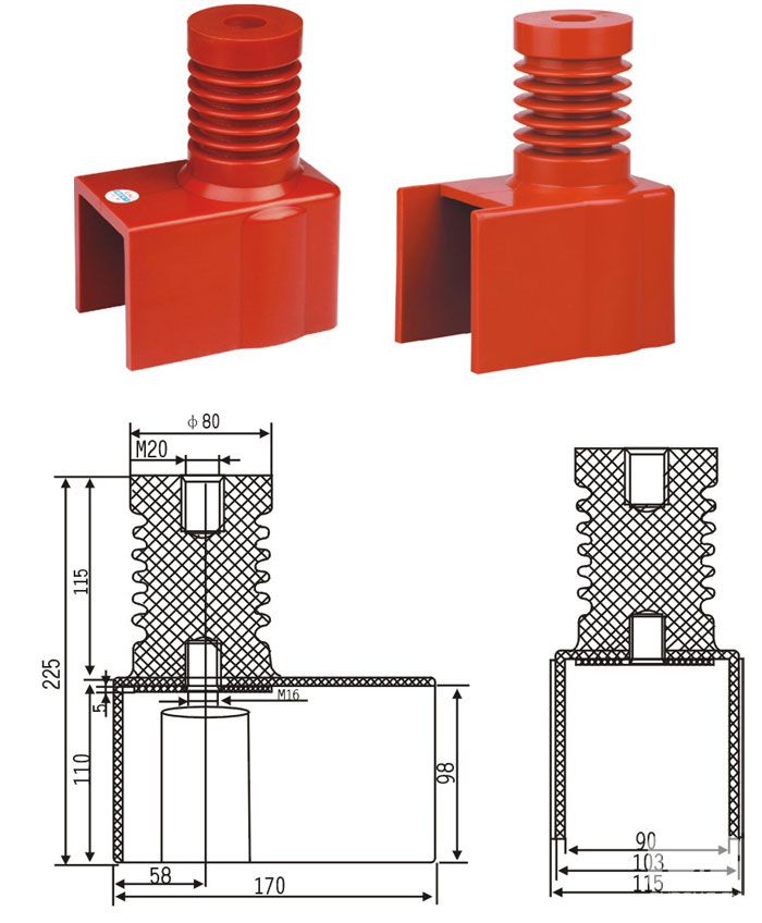 12KV連體絕緣子(630A-1250A) PT車采用環氧真空澆注一次成型,各種套管﹑觸頭盒﹑絕緣筒﹑鐘形罩等系列產品絕大部分絕緣件采用APG工藝成型,有部分產品采用SMC﹑DMC不飽和聚脂增強模塑料壓制成型。產品均使用在3.6~12KV中壓開關柜上。對特殊要求的產品﹑規格尺寸需改進的可按用戶要求設計制造。