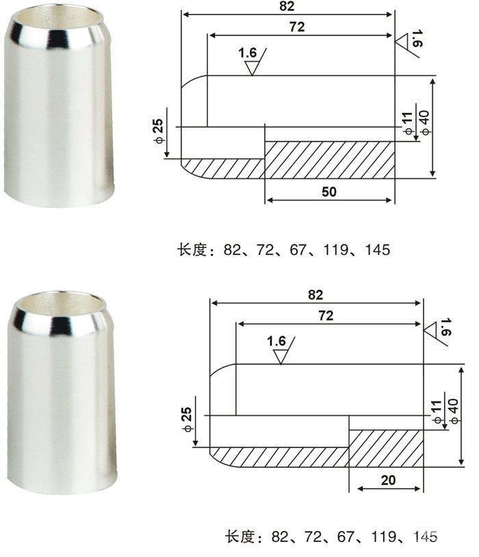 適用于電流1250A,尺寸大小為Φ49×72(82)的靜觸頭,產品材料采用全T2紫銅。