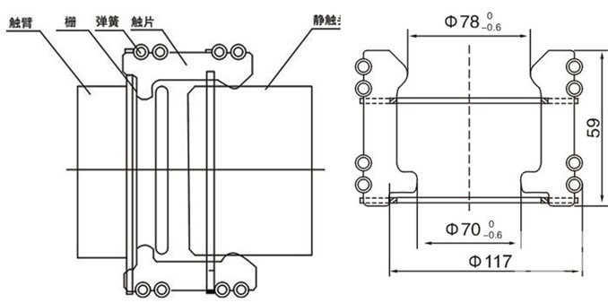 二、結構特點1、無磁不銹鋼支架電解拋光處理;2、無磁不銹鋼環狀張力彈簧捆綁;3、觸片為T2銅板精沖加工,表面鍍厚銀,防變色處理后長期不變色,處形美觀。 ■環狀彈簧壓力均勻 ■采用進口無磁不銹鋼材料,避免渦流 ■刷鍍厚銀,抗磨力強 ■防變色處理,避免銀層氧化脫落4、觸頭數目:48片